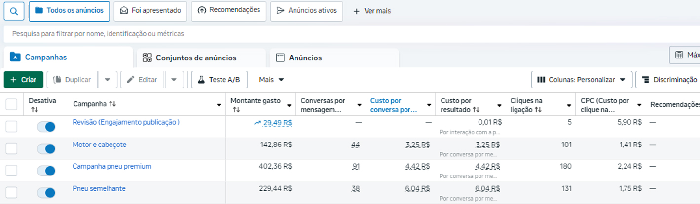 Meta Ads: Segmentamos campanhas por tipo de serviço e trouxemos mais de 300 conversas reais no WhatsApp. Tudo com leads qualificados, pagando entre R$2,99 e R$5,85 por resultado.