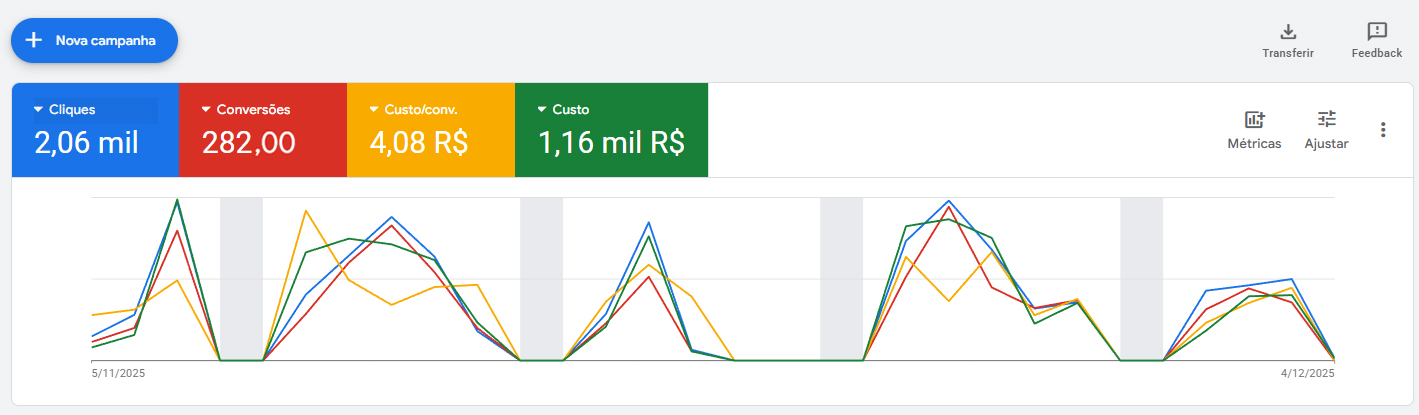 Google Ads: Com apenas R$1.160 investidos, essa oficina recebeu 282 oportunidades reais.